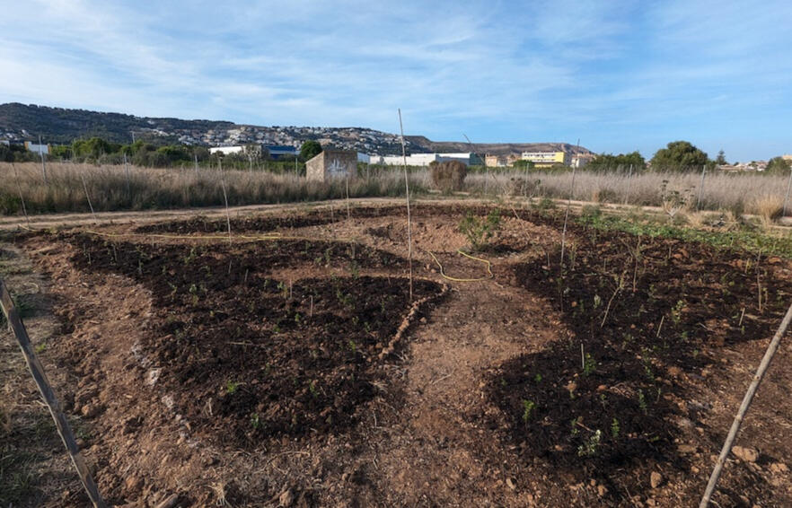 Recogemos restos de vegetales y los transformamos en suelo rico para nuestra huerta regenerativa, mismo aquí in Javea. ¡Juntos estamos salvando el planeta una pila de comida a la vez!